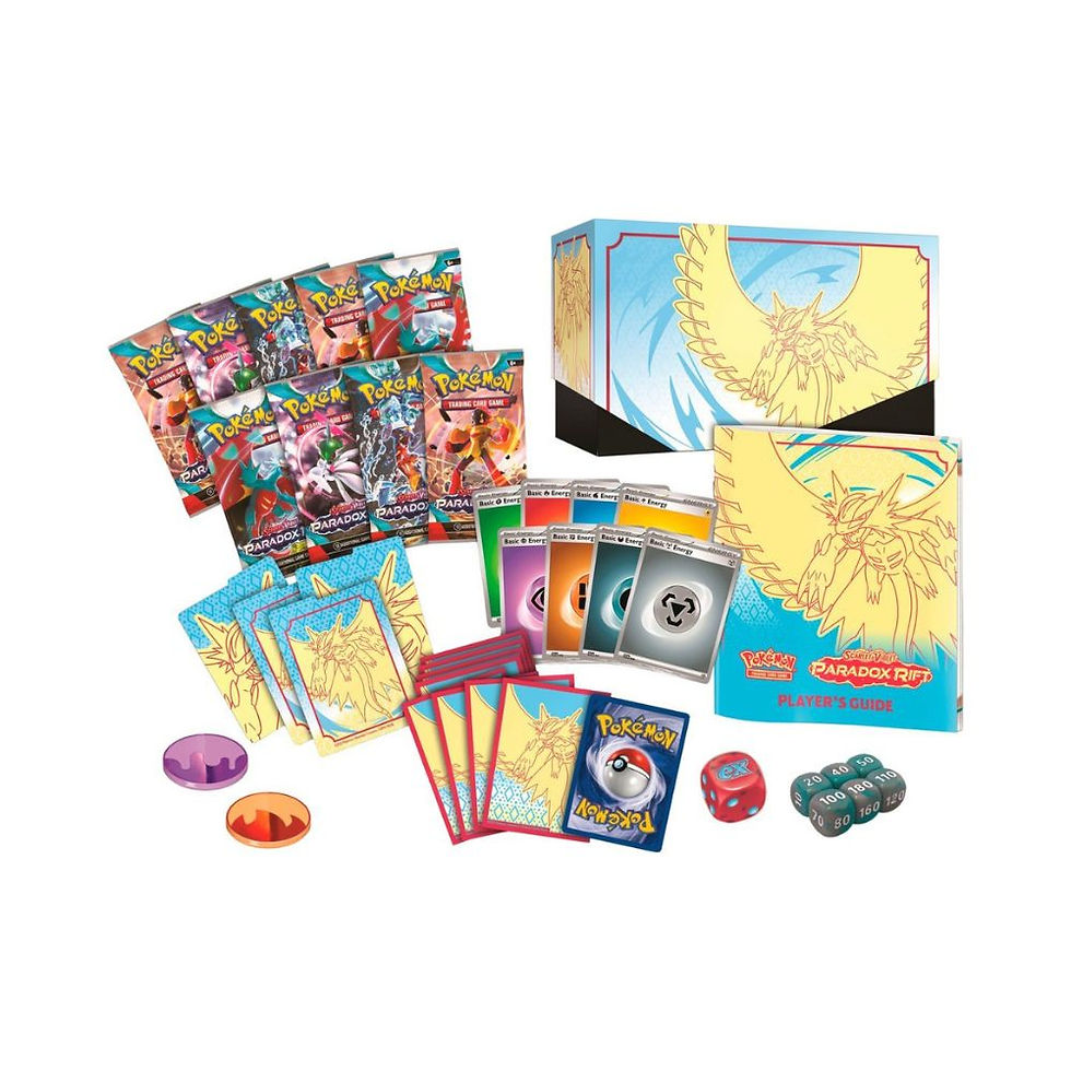 Dive into the clouds and explore a land that appears to be unbound by time! With ferocious attacks, Ancient Pokémon like Roaring Moon ex and Sandy Shocks ex appear alongside artificial Future Pokémon like Iron Valiant ex and Iron Hands ex. Meanwhile, Garchomp ex, Mewtwo ex, and others Terastallize to gain new types, as Armarouge ex, Gholdengo ex, and more Pokémon ex join the fray. Adventure awaits as timelines collide in the Pokémon TCG: Scarlet & Violet—Paradox Rift expansion!